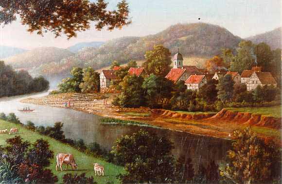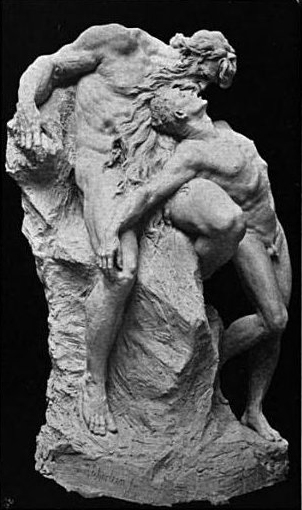 BiographieGustav Eberlein wurde am 14. Juli 1847 in Spiekershausen, einem kleinen Dorf bei Hannoversch Münden geboren [siehe Bild unten] . Nach einer Goldschmiedelehre in Münden studiert er drei Jahre an der Nürnberger Kunstschule. 1869 geht er nach Berlin. Nachhaltigen Einfluß auf sein Schaffen haben die Werke von Reinhold Begas und - bedingt durch zahlreiche Italienaufenthalte - die Kunst der Antike und die von Michelangelo. Die Werke der ersten Periode (1870 - 1892) seines Schaffens sind hiervon stark geprägt. Es überwiegen Figuren und Figurengruppen des antikisierenden Genres neben Porträtbüsten, Grabmälern, Fontänen und Bauplastiken. Mit dem 1886 mit der Goldenen Medaille ausgezeichneten "Dornauszieher" gelingt ihm der Durchbruch. 1887 wird er Mitglied der Königlichen Akademie der Künste zu Berlin. Ein Resümee über sein bisheriges Schaffen veröffentlicht er 1893 in dem Bildband "Aus eines Bildners Seelenleben". Den Höhepunkt seiner Karriere erlebt der Künstler in den Jahren von 1893 - Eberlein wird Professor - bis 1900. Er tritt mit vielen prämierten, zumeist auch ausgeführten großen Kaiser- und Reiterdenkmälern auf. Die dritte Periode (1900 - 1904) ist vor allem durch die Auseinandersetzung mit christlichen Themen in einer realistischen, schockierenden Offenheit geprägt, angelehnt an formale Vorbilder bei Rodin und Meunier. Eberlein veröffentlicht kunsttheoretische und kunstkritische Schriften. Sein Friedensaufruf für die Abrüstung (1898) und sein Eintreten gegen die Sittlichkeitsparagraphen der Lex Heinze (1900/02) zeigen ihn als politisch engagierten Künstler. Das Goethe-Denkmal in Rom (1902/04) markiert den Schlusspunkt in seiner "deutschen" Karriere. |