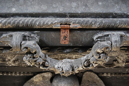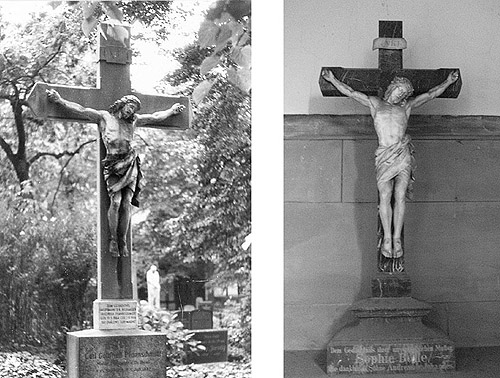 Bilder: Innenansicht Keller, Sargdetail, Kreuze von Ferdinand Pfannschmidt (re. bei Bolle) Fotos EFEU e.V.