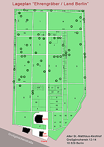 anschließend verlängert wird (oder auch nicht / s.u.). Die Grabstätten werden mit rötlichen Steinen gekennzeichnet, die die zweizeilige Aufschrift Ehrengrab, Land Berlin über dem Wappen der Stadt tragen. 2009 wurde die Nutzung von 6 Grabstellen nicht mehr erweitert. Die