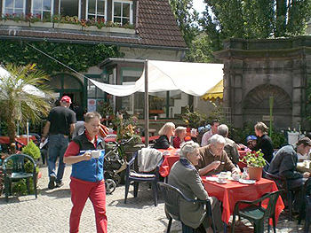 viele Gäste genossen Kaffee und Kuchen in der Sonne.