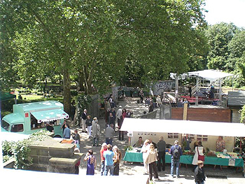 Hier ein Blick von oben auf den Werkshof mit der Bühne