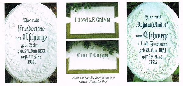 Grimm Journal 1 von 2006, Grab des Großvaters der Brüder Grimm rechts Dr. Bernhard Lauer, Museumsleiter - Brüder Grimm Gesellschaft:Das erste Heft unseres "Brüder Grimm-Journals" ist leider vergriffen; ich räume Ihnen als Autor aber gerne das Recht ein, meinen kleinen Artikel über die Grabstätten der Grimms auf Ihre Seite einfach und einmalig einzustellen mit der Angabe " © by BGG and the author 2006 · All rights reserved >> www.grimms.de" Vor drei Jahren konnte übrigens in Eisenach die Grabstätte von Wilhelm Grimms Frau Dorothea (gest. 1867) wieder neu aufgestellt werden; dazu gibt es im "Brüder Grimm-Journal" Heft 5, 2011 (leider ebefalls vergriffen) eine kurze Notiz. Grab der Mutter Dorothea Grimm, geb. Zimmer, Grab der Schwester Lotte Grimm