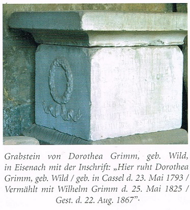 Wilhelm Grimms Ehefrau Henriette Dorothea, geb. Wild verstarb bei einem Besuch in Eisenach. Vor einigen Jahren wurde das Grab restauriert und mit einer Kopie des Engels vom Grab ihrer Schwägerin Lotte versehen.