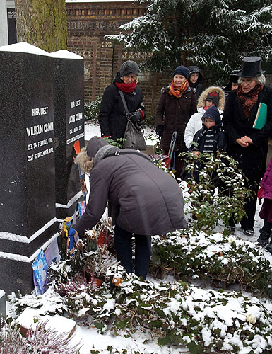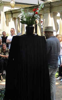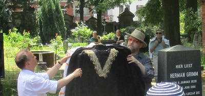 ![]() Enthüllung mit tatkräftiger Unterstützung von Pastor Burkhard Bornemann (Zwölf-Apostel-Gemeinde) ![]() Fertigstellung Juni 2016 mit Efeuhügel und Rosen An der linken Seite vor dem Mausoleumsgarten der Fam. Hansemann wird eine Bank aufgestellt (gestiftet von EFEU e.V.) und Rosen mit Namen von Grimm-Märchen komplettieren die Anlage. ![]() >> rbb online / Grimm 26.6.16 nur bis 4.7.16 abzufragen >> grimms.de / Nachlass