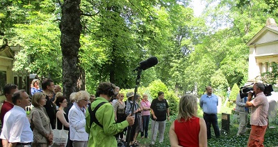 ![]() Gäste und Fernsehteam L. Wekenborg (EFEU e.V.) mit Foto Auguste Grimm