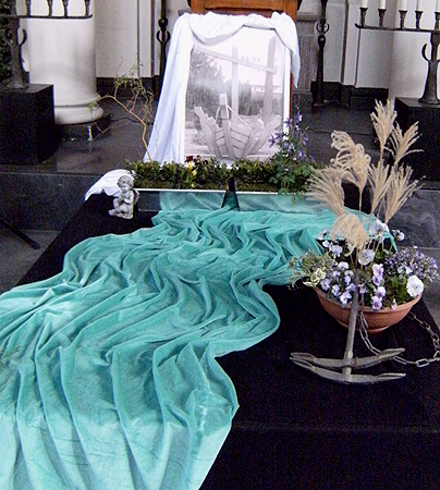 Dekoration Kapelle 2008 mit Grabsteinentwürfen