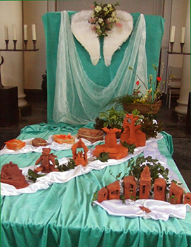 Dekoration: Feier in der Kapelle / blauer Mulch als Wegdekoration seit 16.9.2012