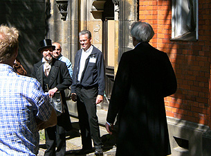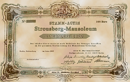 Führung mit gespielter Szene: Strousberg und das gepfändete Mausoleum. Architektin berichtete über die Restaurierung 2009. Mit einer aktuell überarbeiteten "Actie" kann man die weiteren Arbeiten unterstützen. Bei Interesse bitte melden bei der Friedhofsverwaltung.